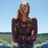 Our lightweight. faded. reverse-print sweater with exposed seaming. side slits and rib trim. Three-quarter sleeves. Cotton. Hand wash. expect dye transfer or loss. Imported. Exclusive. Sizes XS (0-2). S (4-6). M (8-10). L (12-14). XL (16-18). XXL (20-22). Approx. 23.5l.