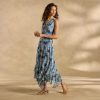 Floral printed and overdyed. this Western inspired. soft corduroy shirt is beautiful with ruffles at the neckline for a feminine twist. Two patch pockets. snap closure and bandana print detail inside. Cotton. Machine wash. Imported. Exclusive. Sizes XXS (00). XS (0–2). S (4–6). M (8–10). L (12–14). XL (16–18). Approx. 24l.
