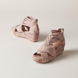 Eye-catching curves and all-day comfort are a winning combination in these woven. pebbled leather sandals with back zippers and extra-thick. cushioned insoles. Imported. Euro whole sizes 36-41. 36 (US 5). 37 (US 6). 38 (US 7). 39 (US 8). 40 (US 9). 41 (US 10). 2 wedge.